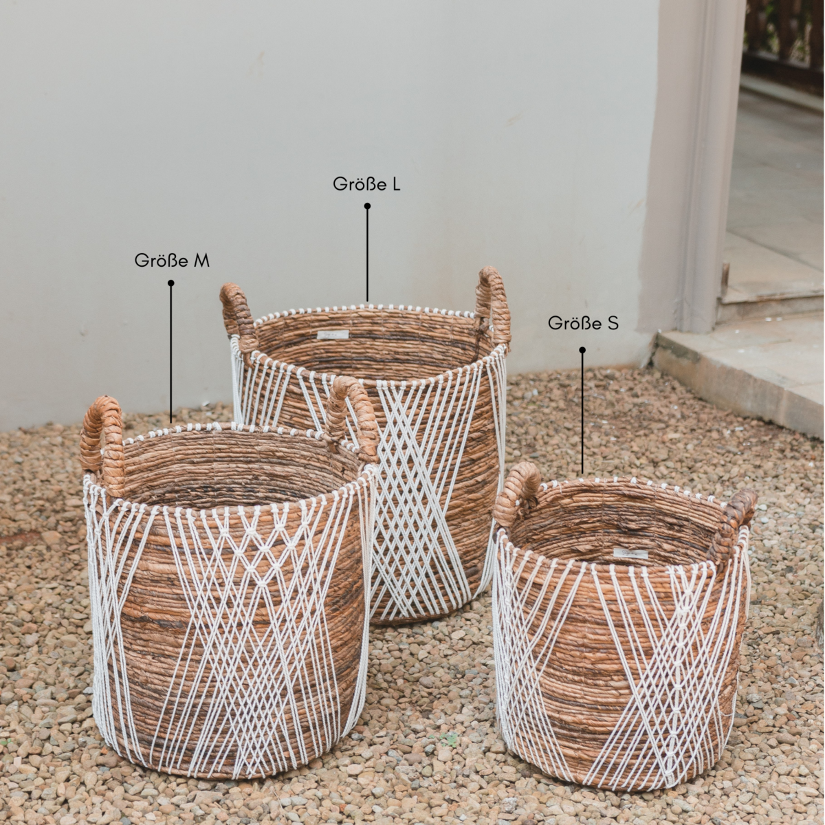 Juwana maakt deel uit van onze grote collectie manden met de materiaalcombinatie bananenvezel en witte katoenen koorden. Wij kunnen er geen genoeg van krijgen – en jij waarschijnlijk ook. Het grote contrast maakt deze manden tot echte eyecatchers, waardoor ze moeiteloos het hoogtepunt van een kamer zijn.